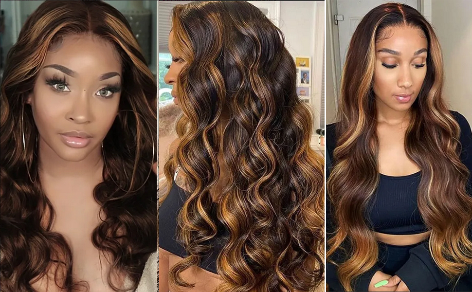 Fb30 Ombre Lace Front Wig Human Hair Highlights Body Wave 13x6x1 Balayage Honey Brown Colored Human Hair Wigs Pre Plucked T Part Lace Frontal Wigs 150 Density 22 Inch