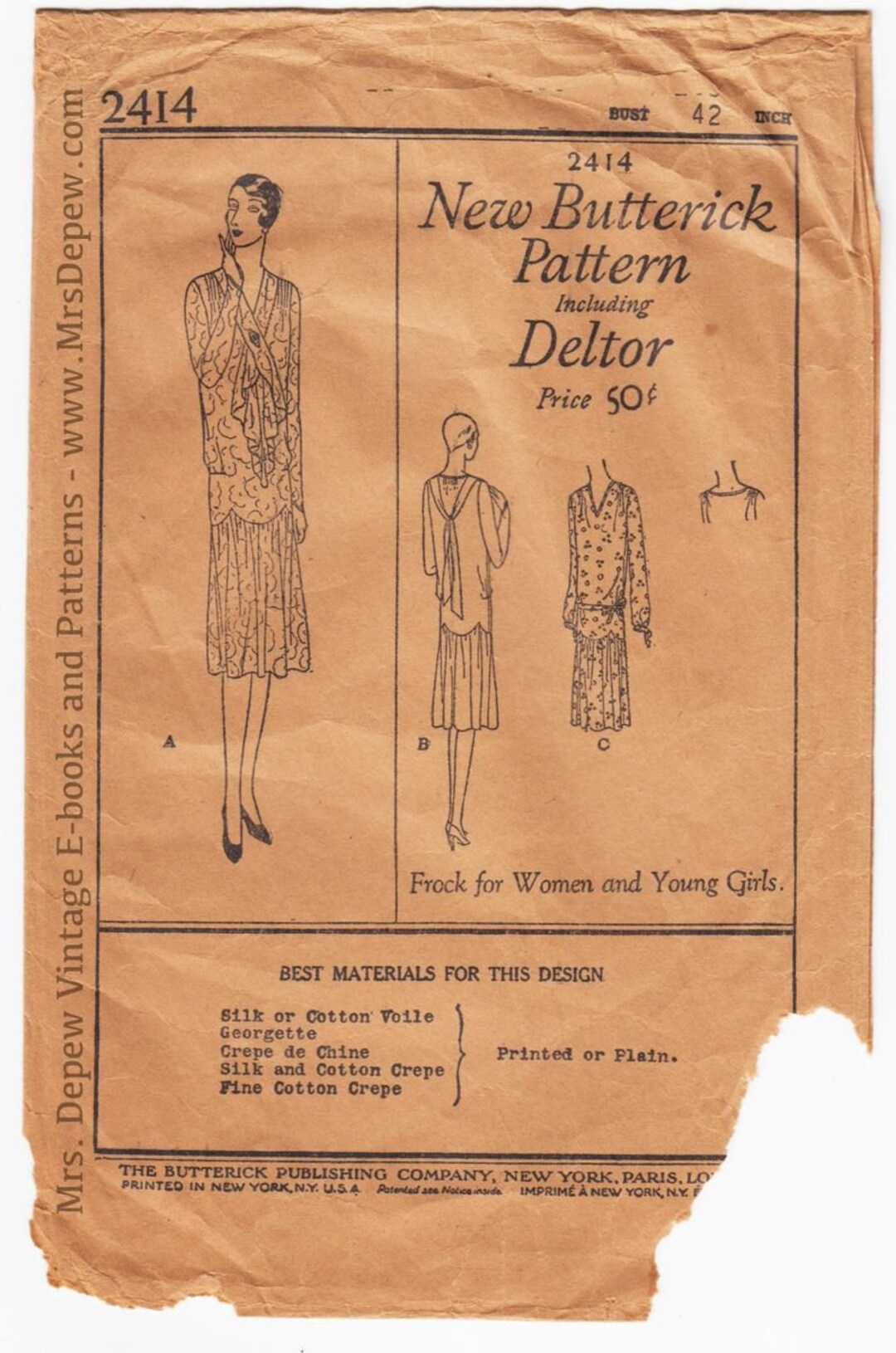 Original Vintage Sewing Pattern 1920s Dress Butterick 2414 42 Etsy